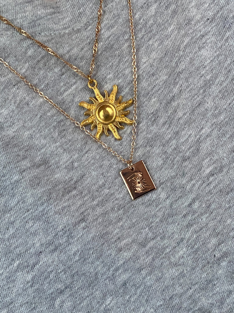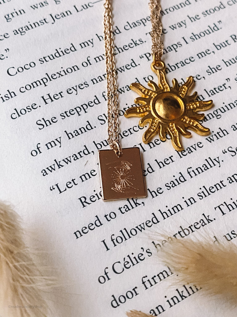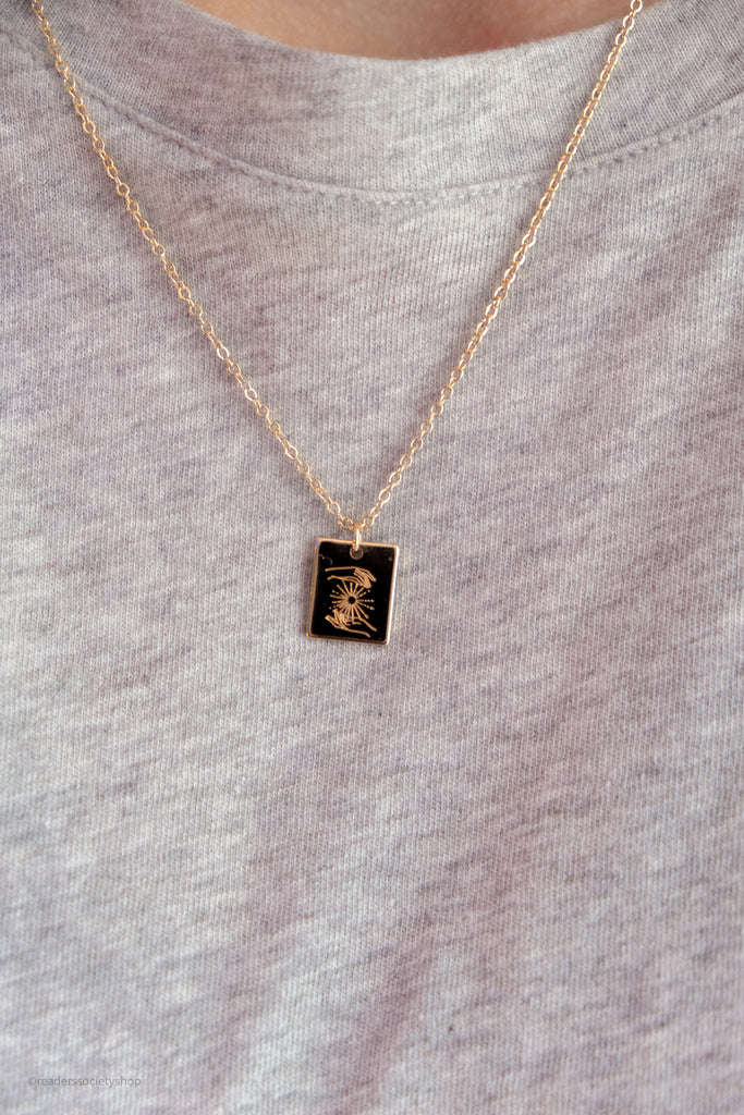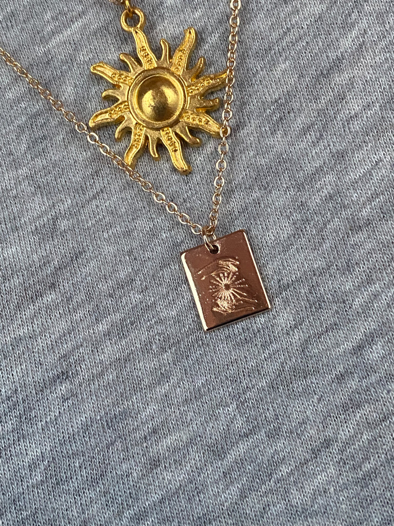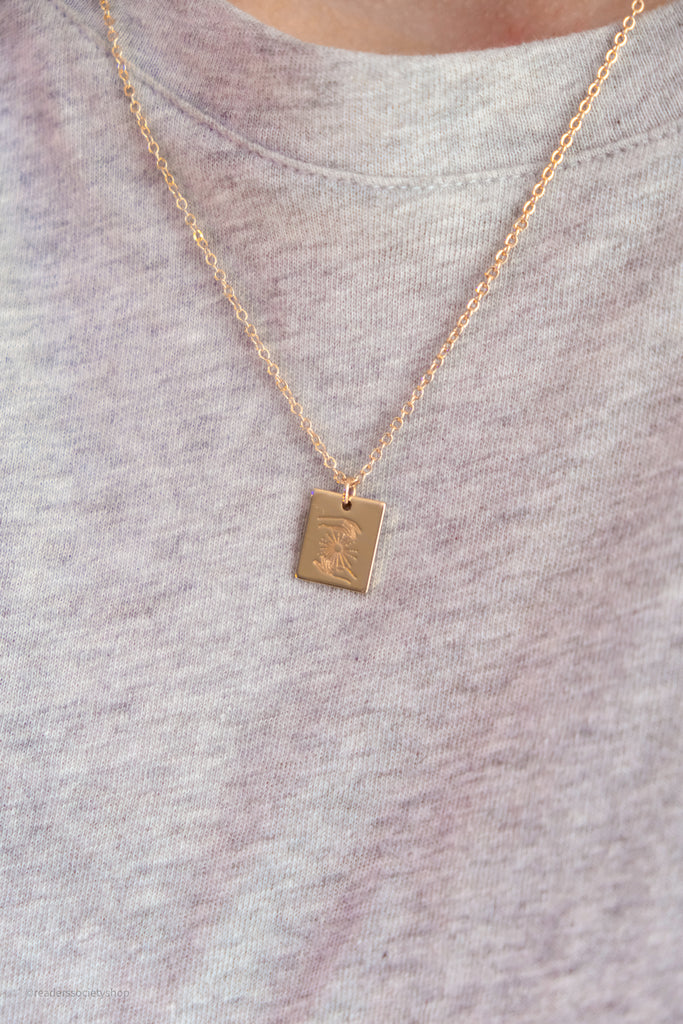 A simple smooth pendant featuring an engraved illustration design of hands and a ball of power on a dainty adjustable chain. The perfect everyday necklace is ideal for layering with Sankta Alina sun necklace, any of our SoC necklaces or our Crooked Crown necklace.