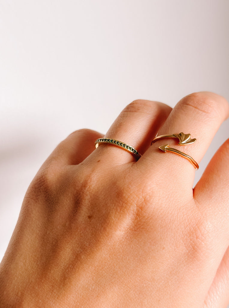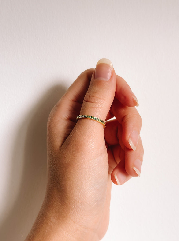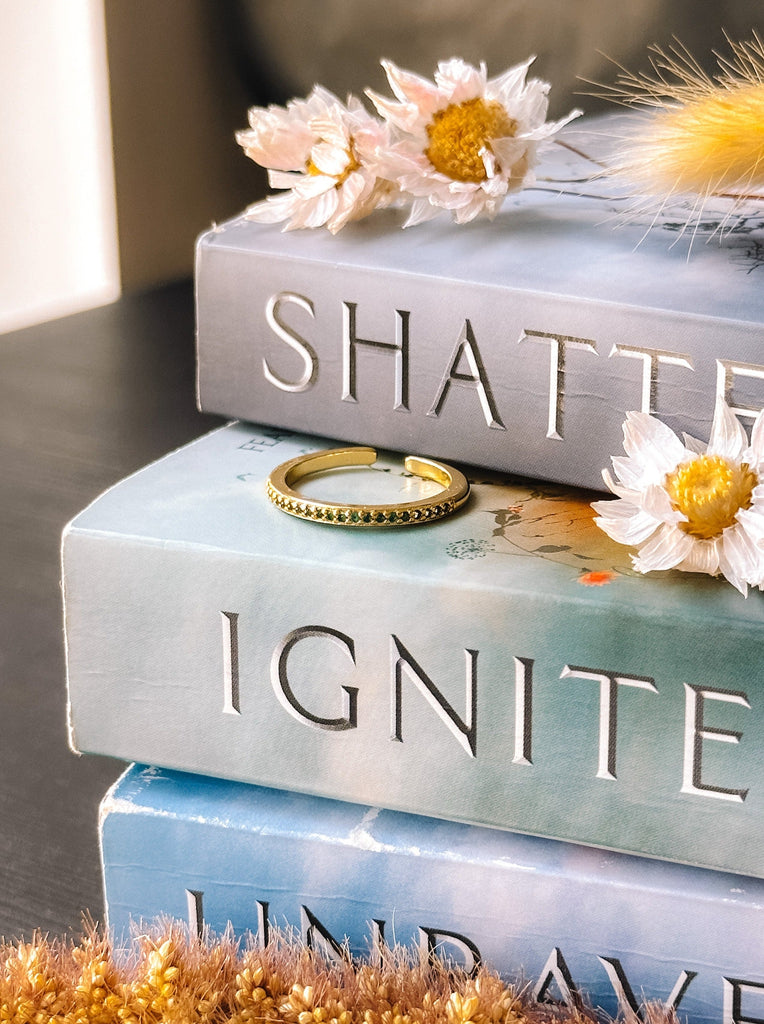 Inspired by Shatter Me by Tahereh Mafi. This ring is my interpretation of Aaron Warner's jade ring, a modern on-trend updated version. Set in gold with green zircon.