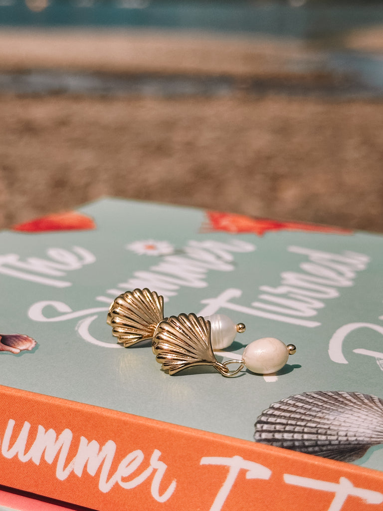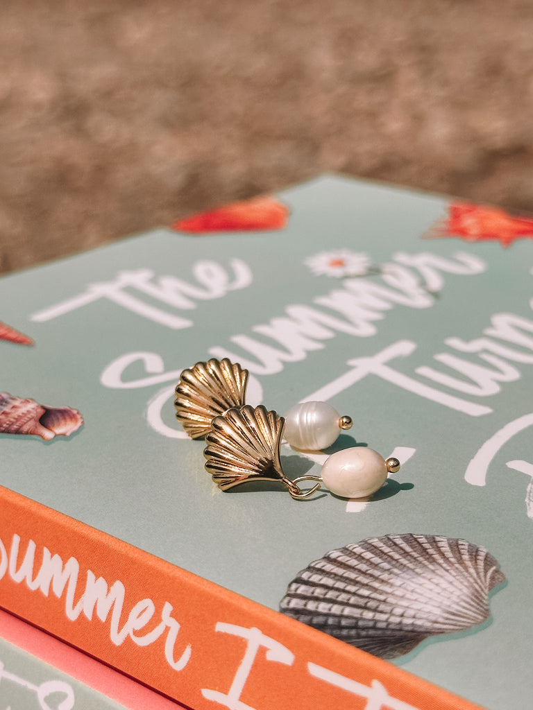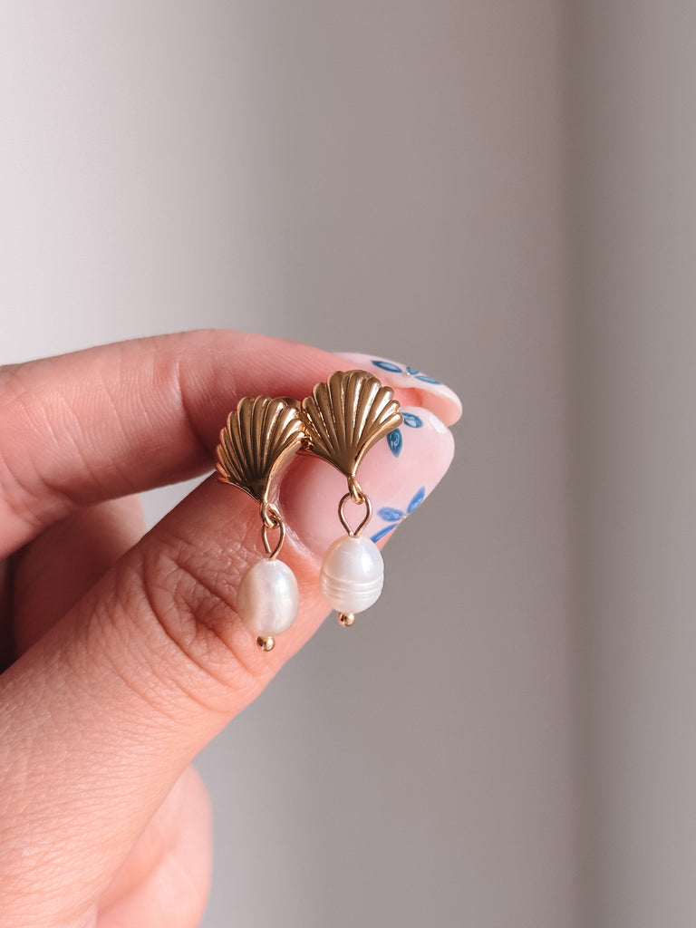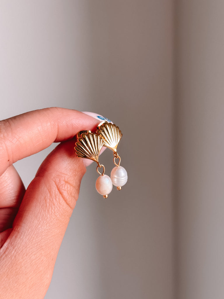 A beautiful summer earring featuring a dainty small shell with a freshwater pearl! Perfect to elevate your summer outfit!