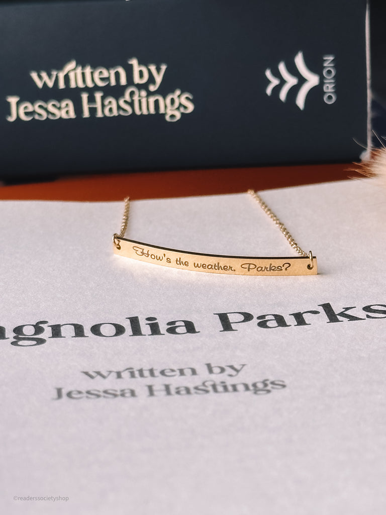 This is an engraved, dainty and oh-so cute bracelet featuring one of my favourite MP & BJ sayings!