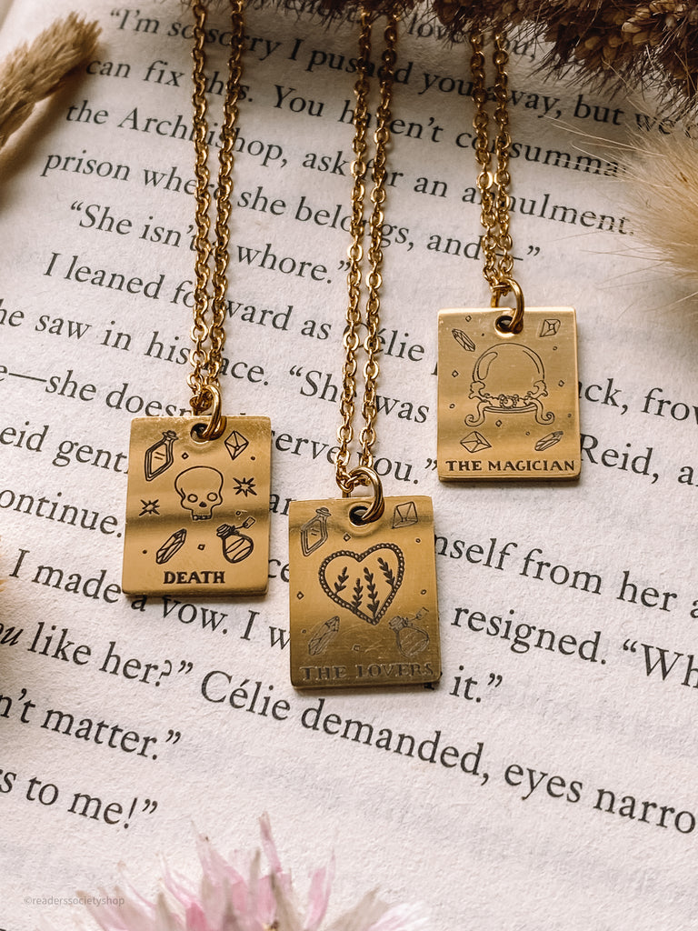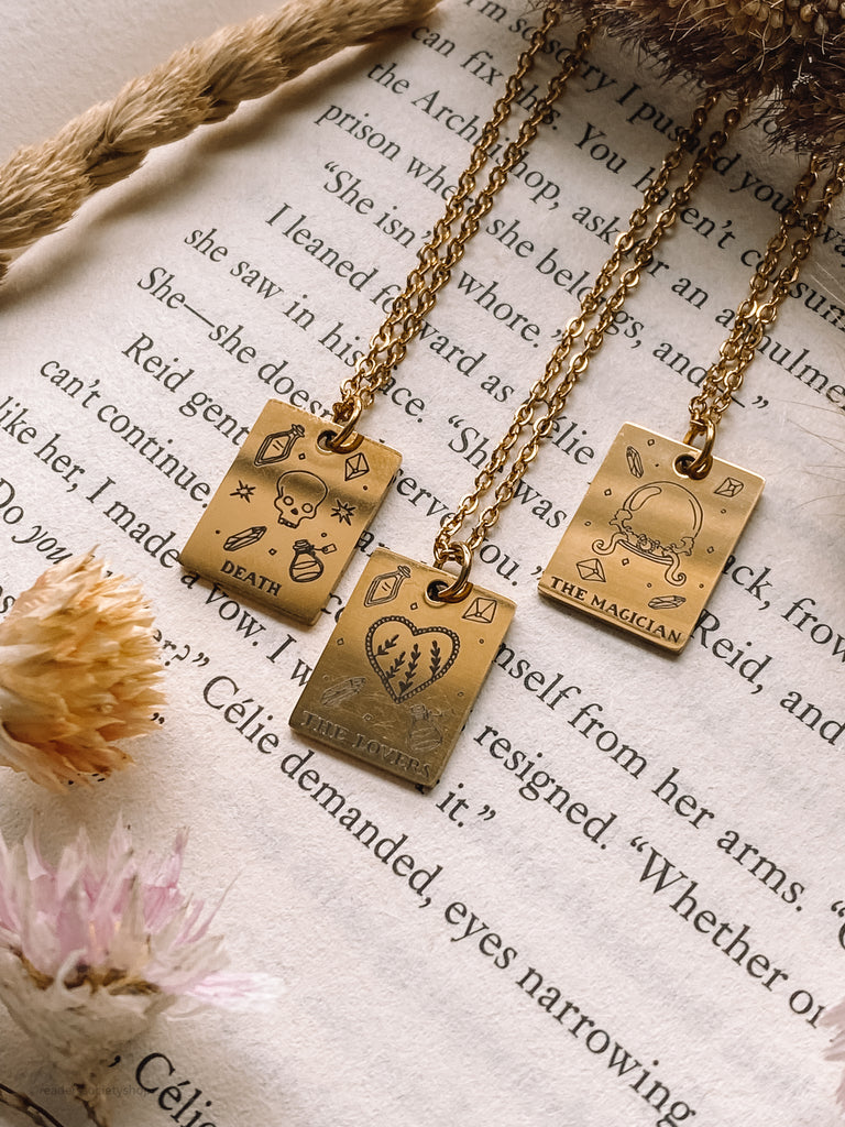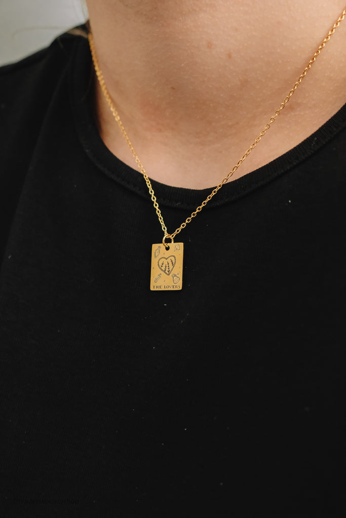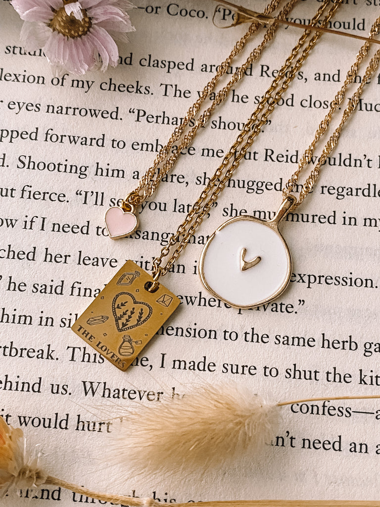 A dainty, stainless steel pendent, featuring detailed illustrations in a hand drawn style, on a dainty adjustable chain. It is perfect for layering with pieces from our Romance collection.