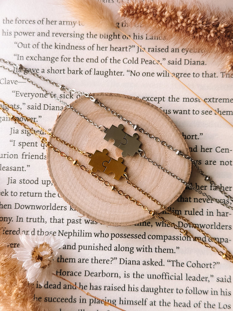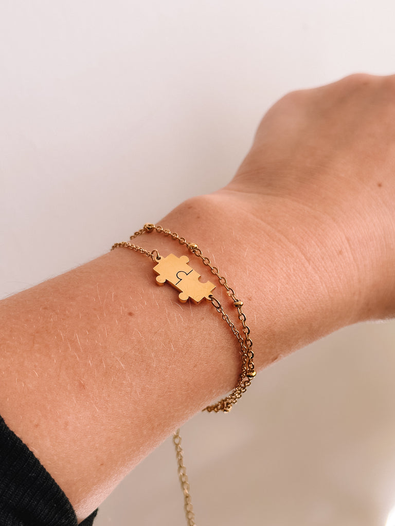 This is a dainty double-layered bracelet features two puzzle pieces together.